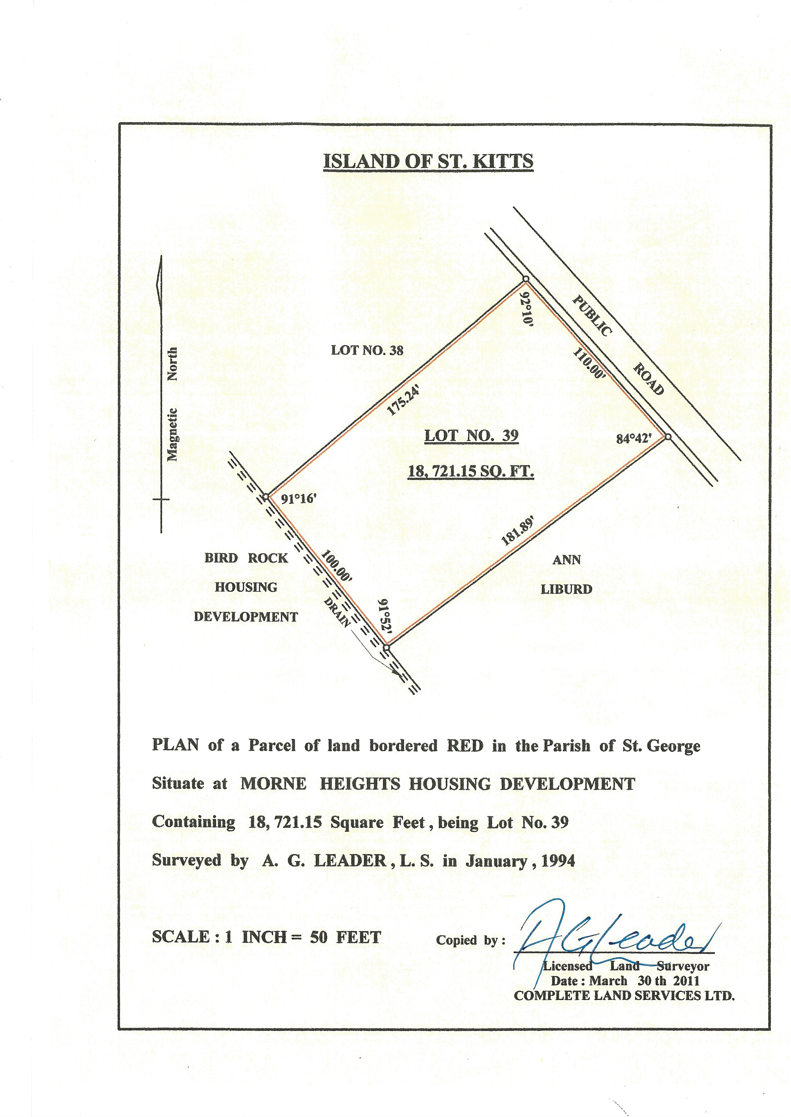 18,721.15 Sq Ft Land in Morne Heights Housing Development, Bird Rock, St. Kitts