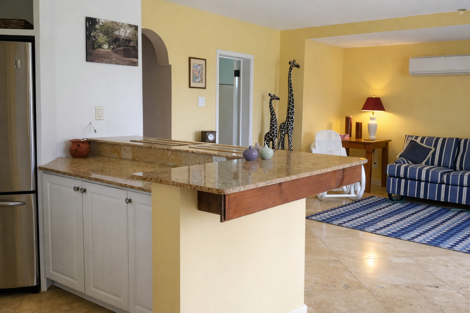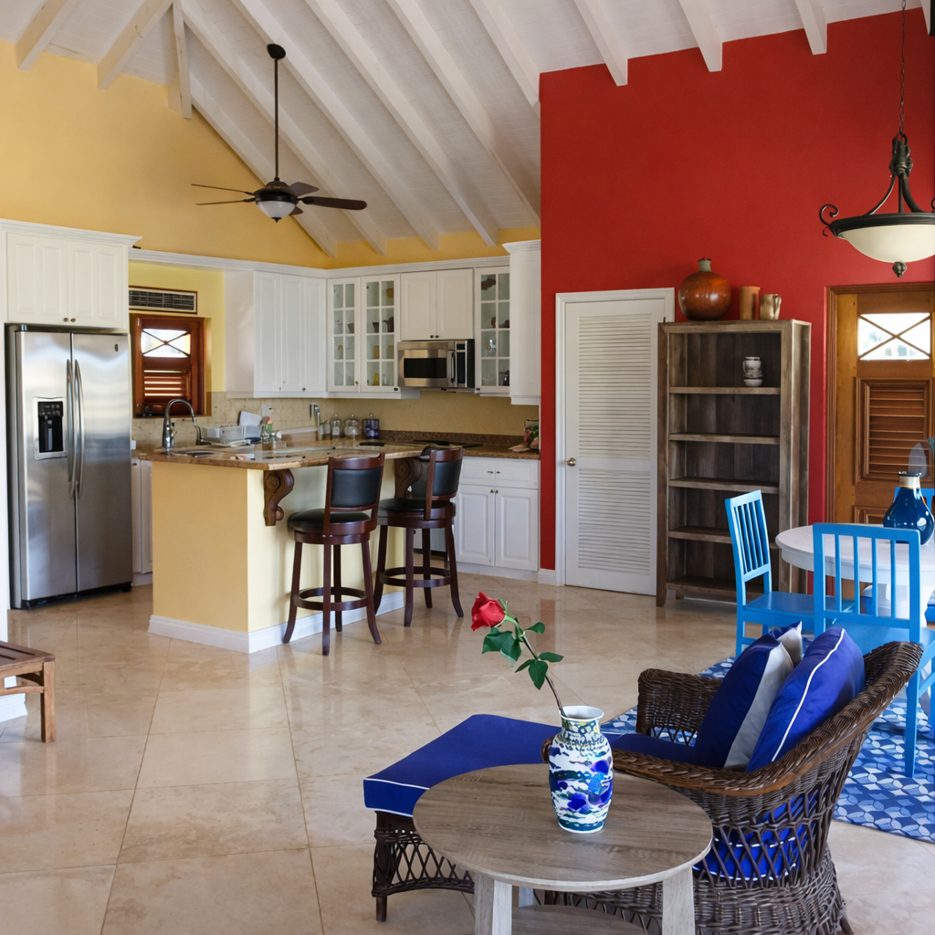 The design of this property is very similar in style to the Four Seasons villas on Nevis. With an open concept kitchen, dining and living room, and fully screened in porches, this villa allows you to enjoy the constant cool Caribbean breezes throughout the day and night. The upper level is a self contained one bedroom, one bathroom apartment, which rents for US$1,300 per month plus utilities; while the lower level features a one and a half bedroom and two bathroom fully self contained apartment, which rents for US$900 per month plus utilities. The entire house can be rented for US$1,800 per month plus utilities. This property is conveniently located in a residential area in the parish of St. John’s, within walking distance of two large supermarket chains, two gas stations, a bakery, a laundromat, a gym, a fitness park, department and hardware stores, local restaurants, and the famous hot springs. The 0.46 acre plot of land on which this property sits, slopes downwards with the villa on the highest part to benefit from the magnificent views of Nevis Peak and the Caribbean Sea.