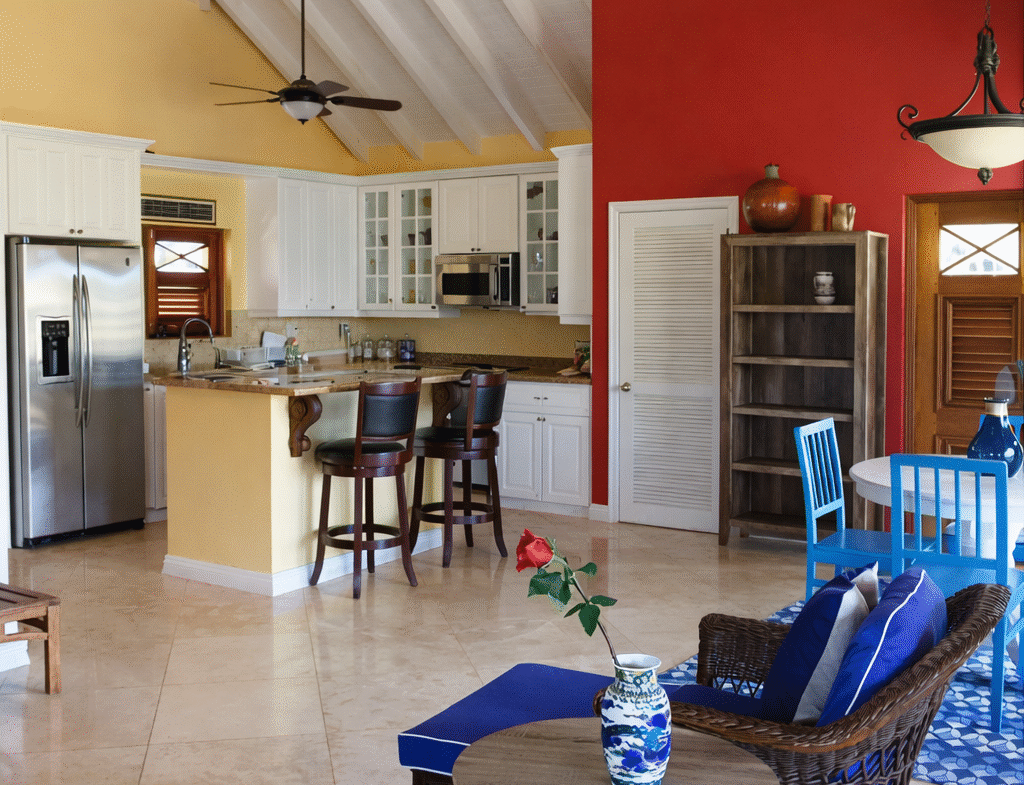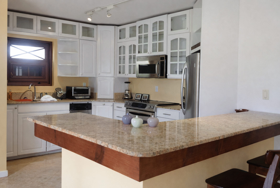 The design of this property is very similar in style to the Four Seasons villas on Nevis. With an open concept kitchen, dining and living room, and fully screened in porches, this villa allows you to enjoy the constant cool Caribbean breezes throughout the day and night. The upper level is a self contained one bedroom, one bathroom apartment, which rents for US$1,300 per month plus utilities; while the lower level features a one and a half bedroom and two bathroom fully self contained apartment, which rents for US$900 per month plus utilities. The entire house can be rented for US$1,800 per month plus utilities. This property is conveniently located in a residential area in the parish of St. John’s, within walking distance of two large supermarket chains, two gas stations, a bakery, a laundromat, a gym, a fitness park, department and hardware stores, local restaurants, and the famous hot springs. The 0.46 acre plot of land on which this property sits, slopes downwards with the villa on the highest part to benefit from the magnificent views of Nevis Peak and the Caribbean Sea.
