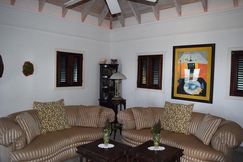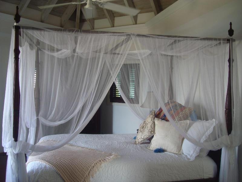 Castelet is a lovely hillside villa with expansive panoramic views of Nevis, St. Kitts and the Caribbean Sea. This four-bedroom four bathroom home is beautifully appointed with antique pieces and natural materials from the island. All four bedrooms offer queen sized beds and en-suite bathrooms.