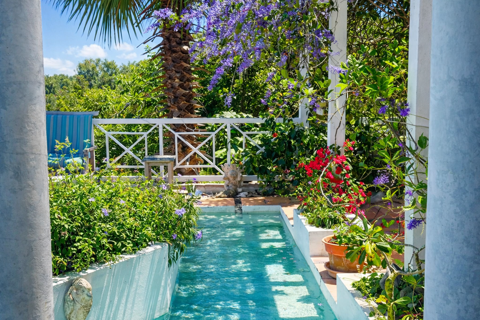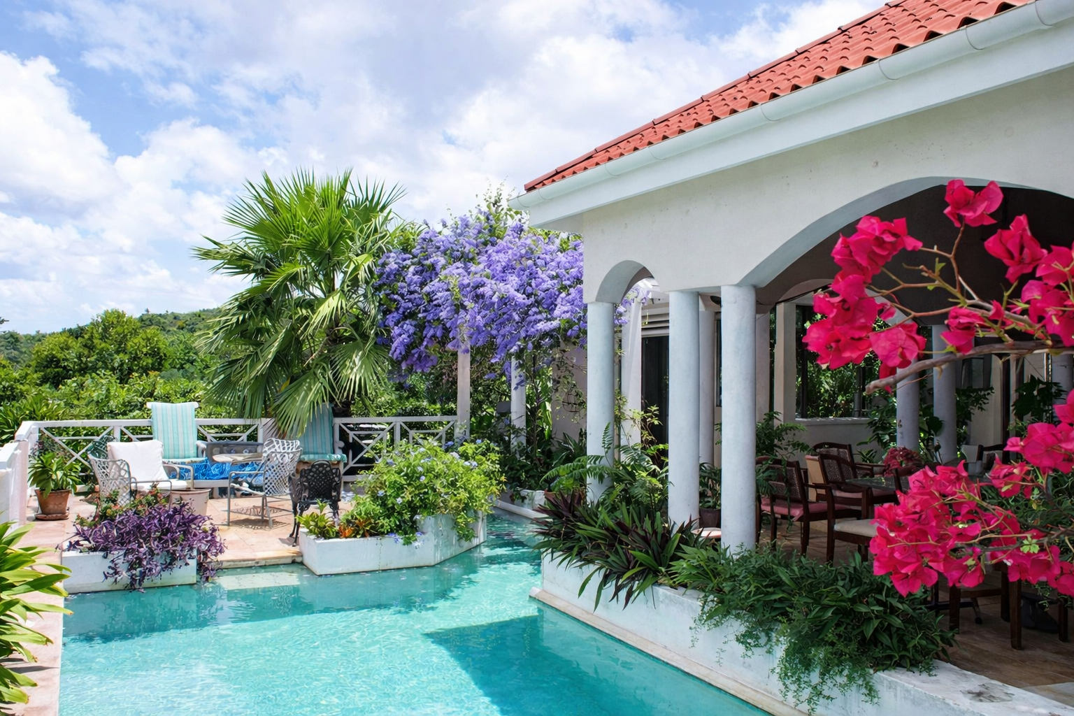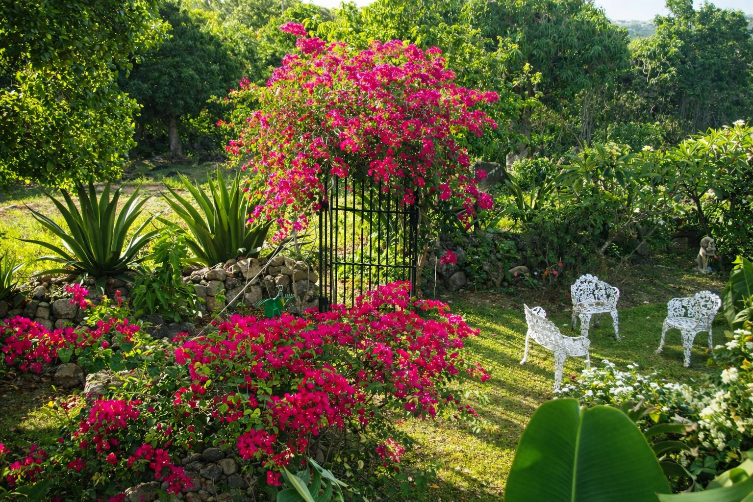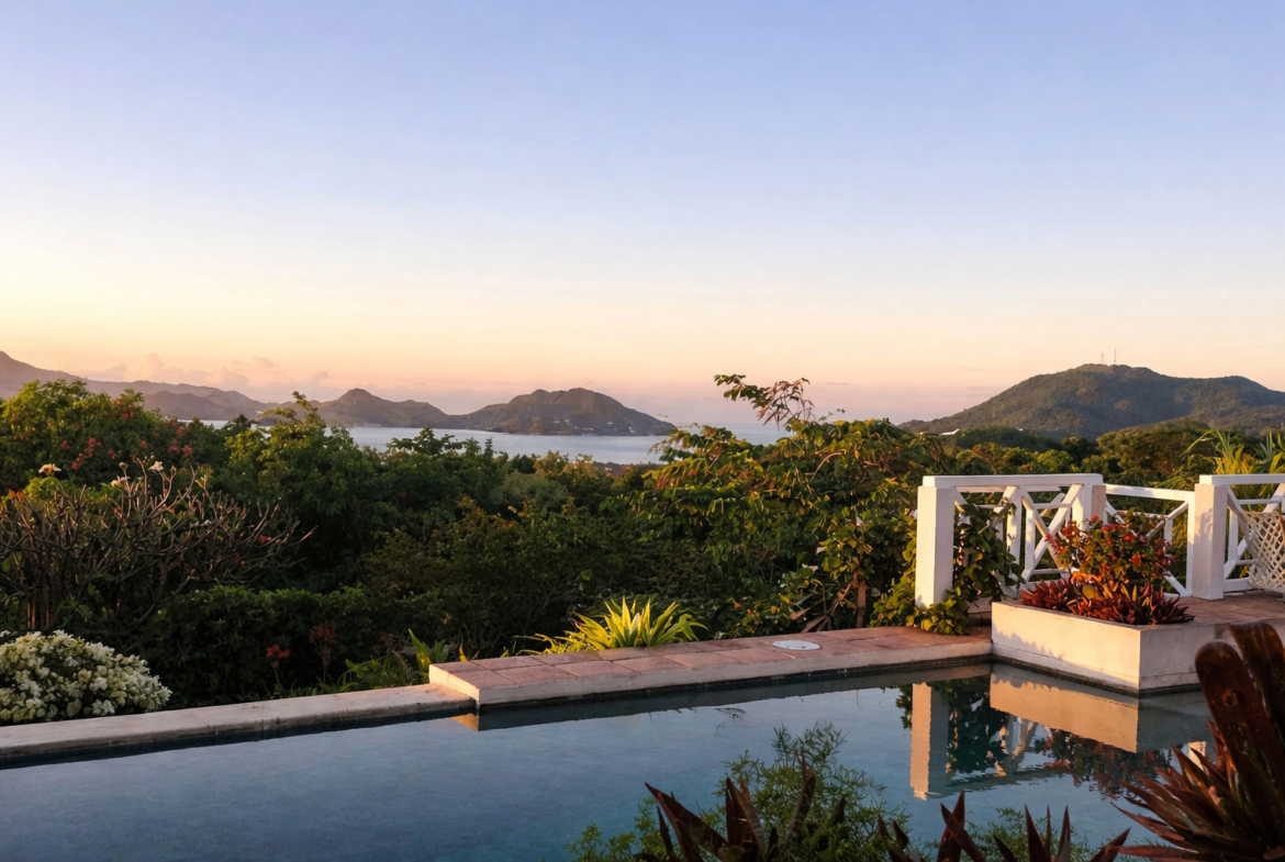 Set in 5.0 acres of lush tropical gardens with magnificent views of the Caribbean Sea to the front and Mount Nevis to the rear, this villa has three bedrooms plus a separate guest cottage. The property is located 700 ft. above sea level providing ideal temperatures year round. The villa is open in design allowing you to benefit from the fresh air and breathtaking views from every living space.
