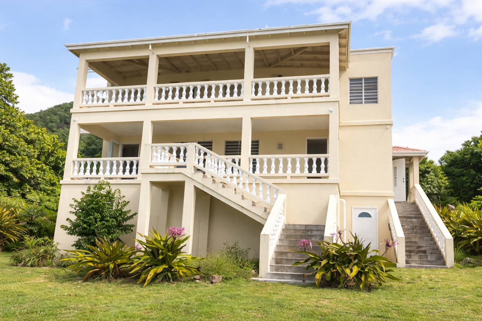 This 3,450+ SF home is on 3 acres and situated high in the hills of Hamilton. It boasts spectacular views of the Caribbean Sea and Nevis Peak.