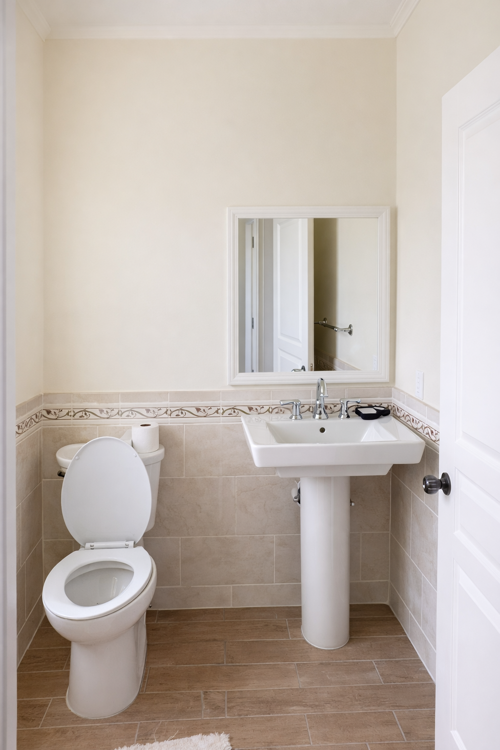 -The first floor contains one bedroom, one bathroom, powder room, living area, kitchen and dining area, laundry and porches