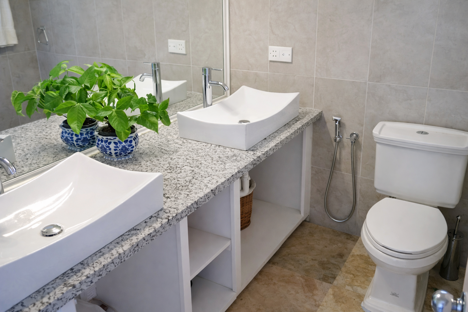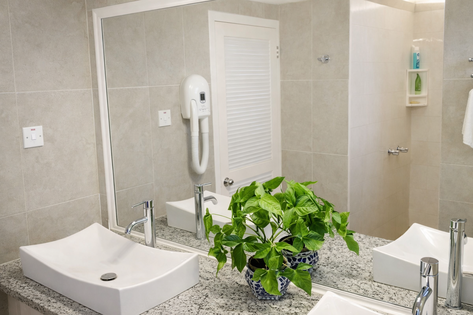 - 2 comfortable bedrooms each with queen sized beds and en suite bathrooms.