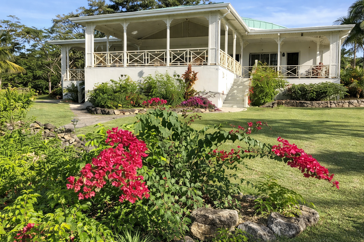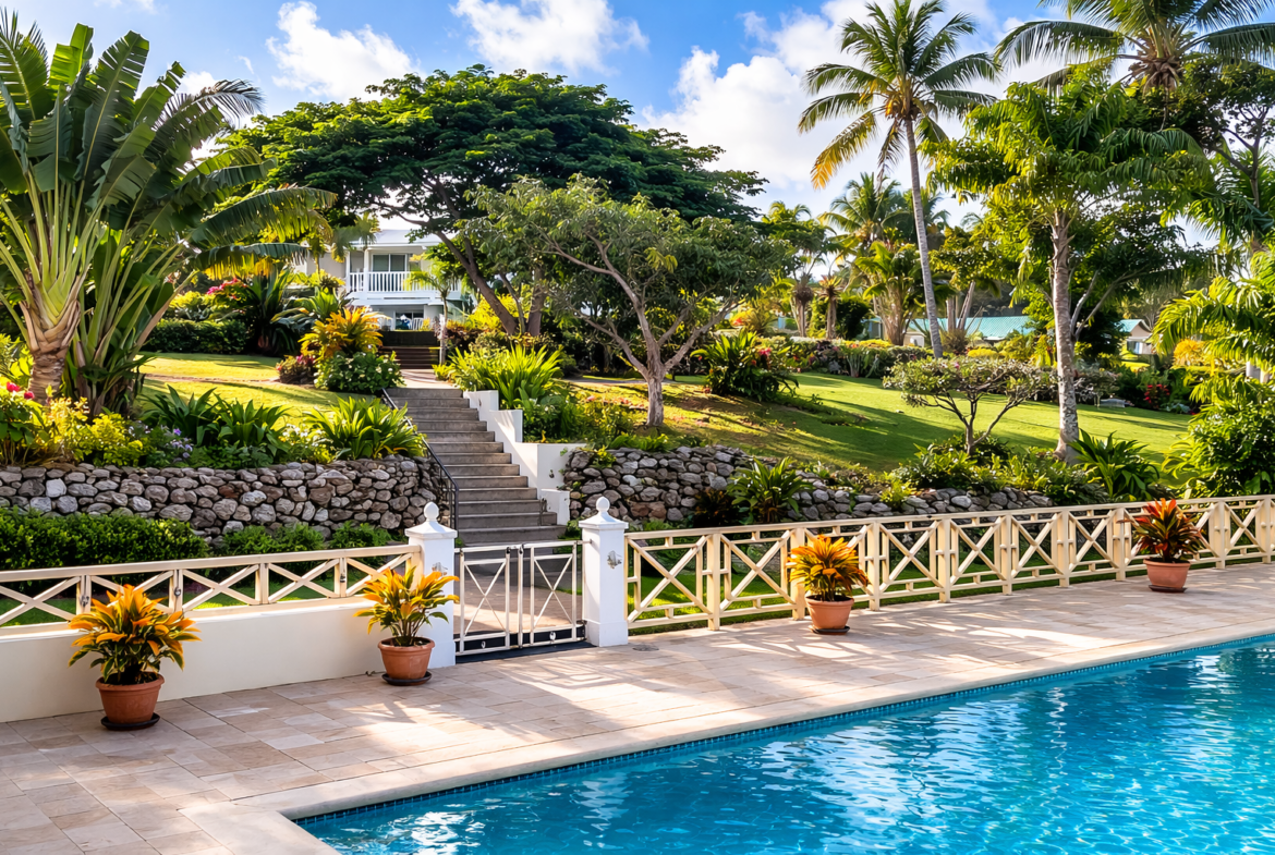 The upper gardens, resplendent with lawns, vibrant palms, and a variety of tropical plants, provide a tranquil retreat, while the private pool and tennis court seamlessly blend into the hillside landscape. With a touch of historical allure and modern amenities, Hill Rise House and Guest Cottage invite you to experience Caribbean living at its finest.