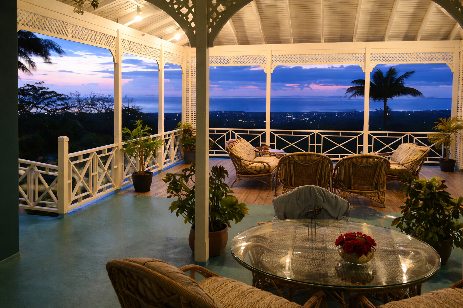 - Expansive verandahs open on three sides, offering panoramic views day and night.