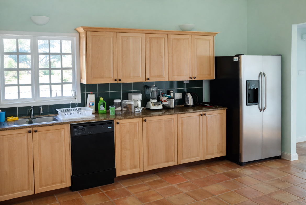 - Modern appliances, including a gas stove, fridge freezer with ice making, dishwasher, microwave, blender, coffee machine, toaster, etc.