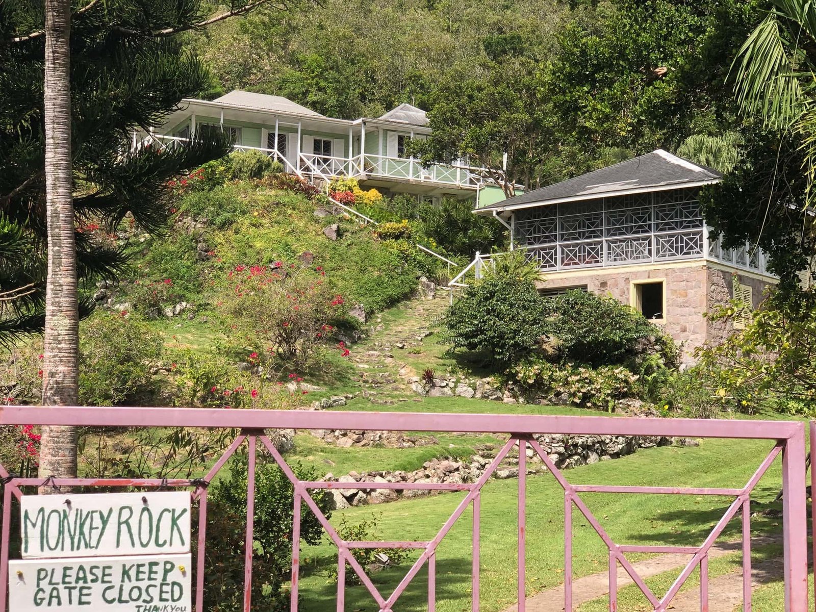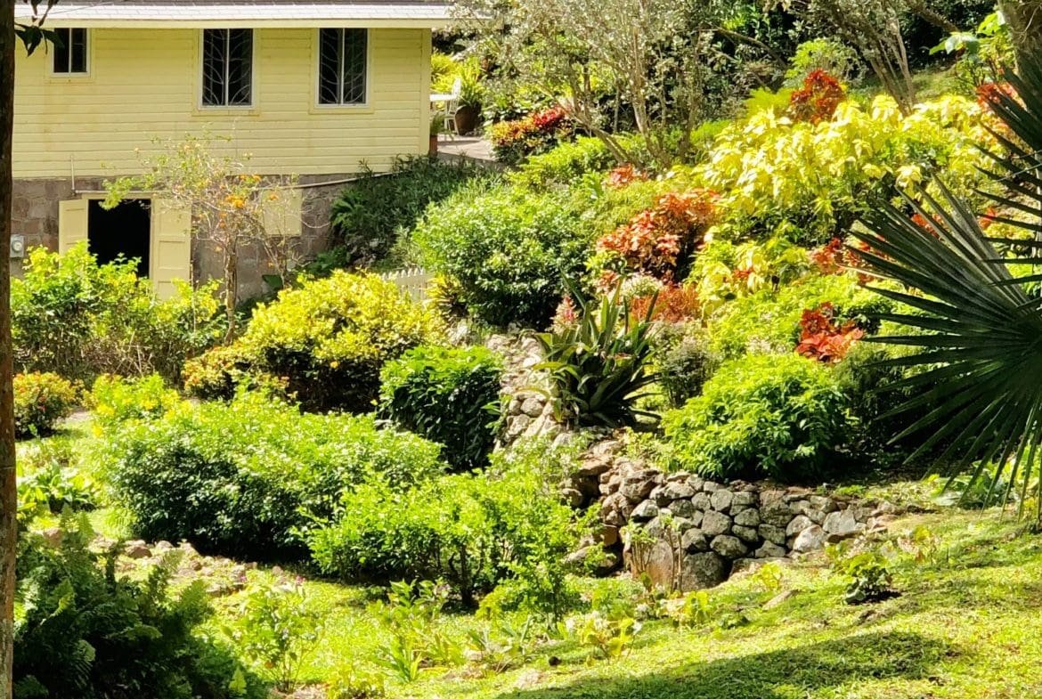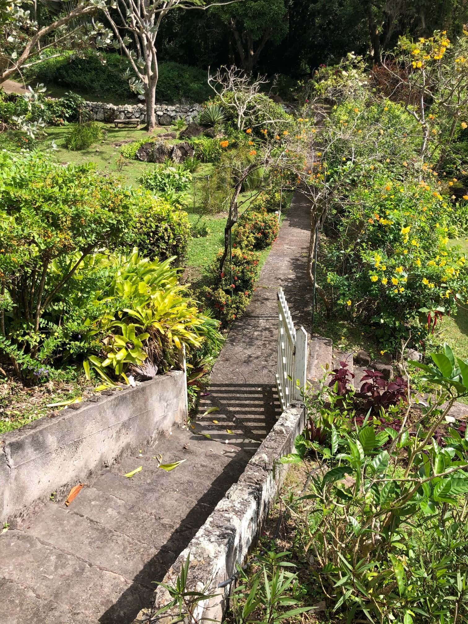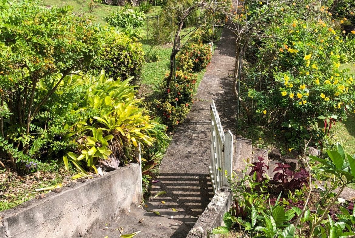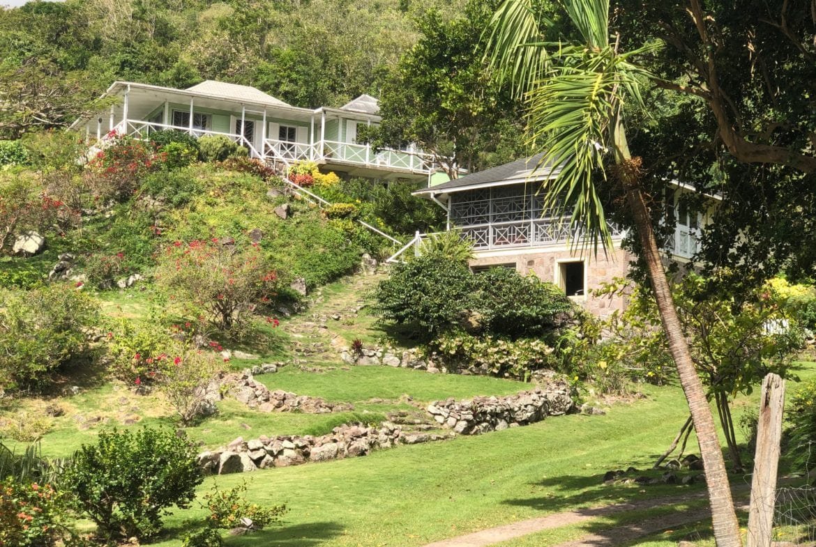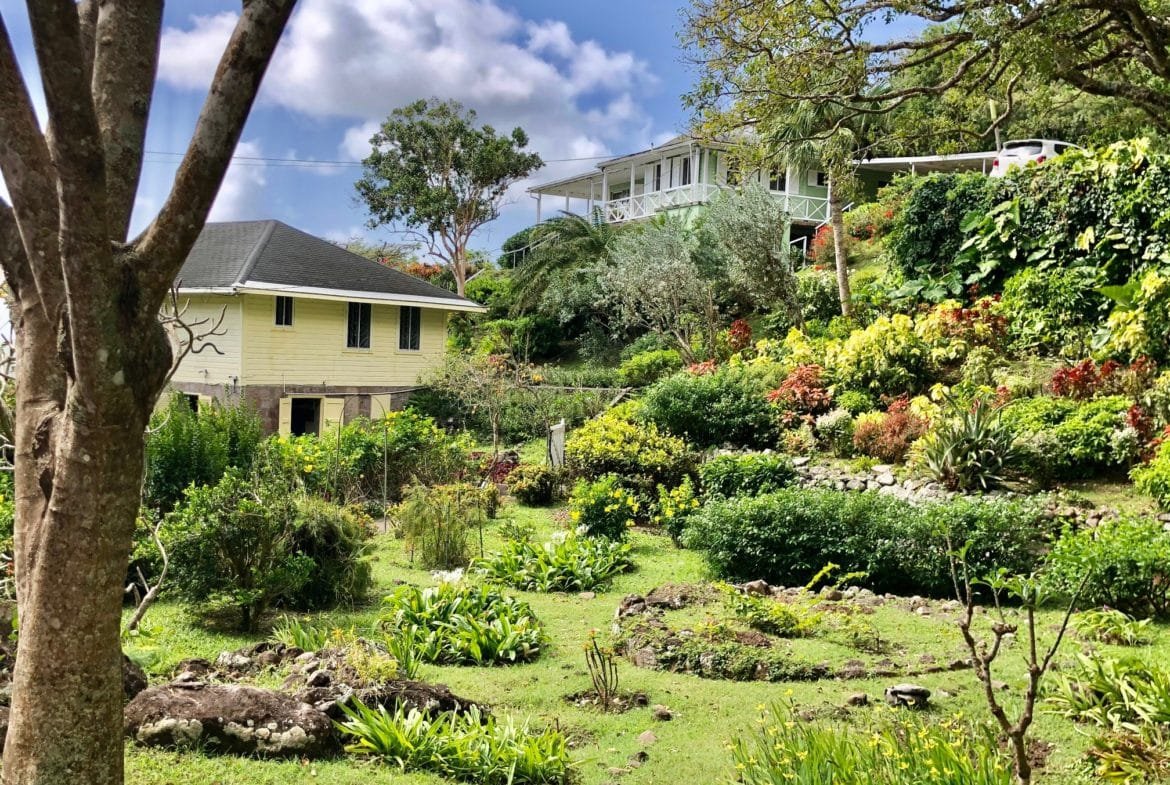 The picturesque private villa with guest cottage is located in the hillside of River Path, Gingerland, Nevis. It is located on 2 1/2 acres of beautifully landscaped, lush gardens. The main house has two bedrooms and two bathrooms, while the smaller cottage has two bedrooms and one bathroom. There is a cistern and generator on the property which can adequately supply both cottages, if necessary. It is a traditional Nevis style home built in the 1950’s with wooden floors throughout, tile counters in the kitchen and granite countertops in the bathrooms. As it is currently owned by Brits, all outlets are wired for 220V. Asking price is US$750,000.