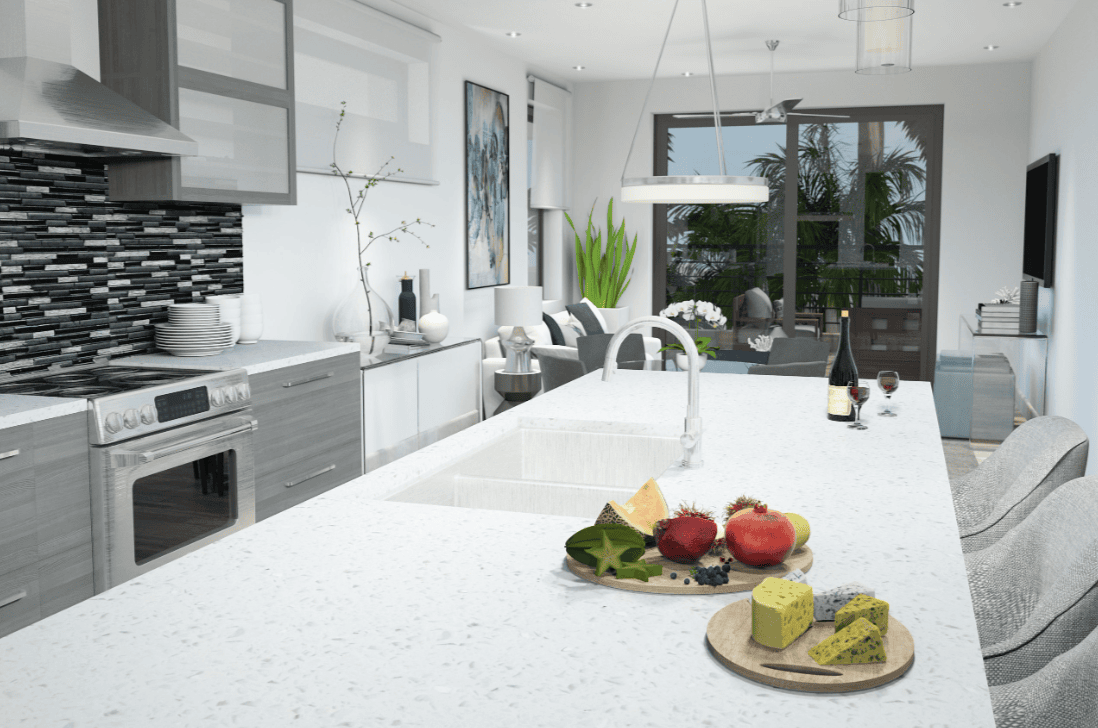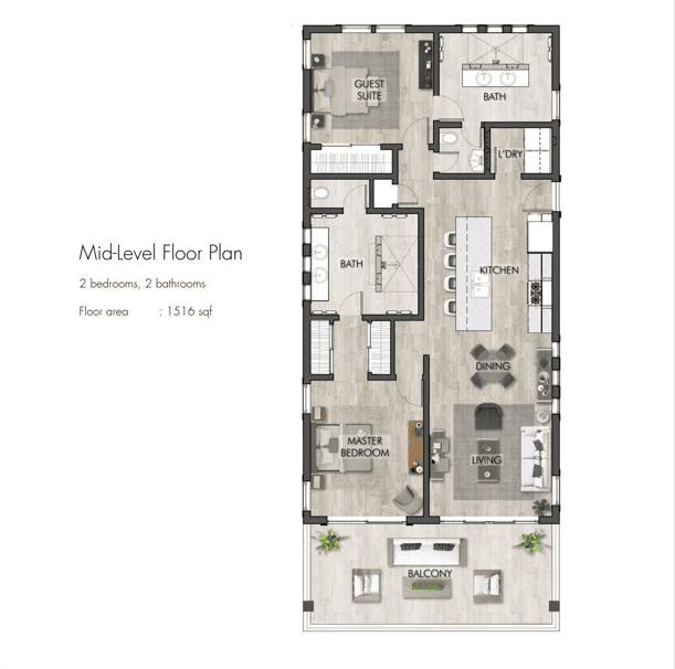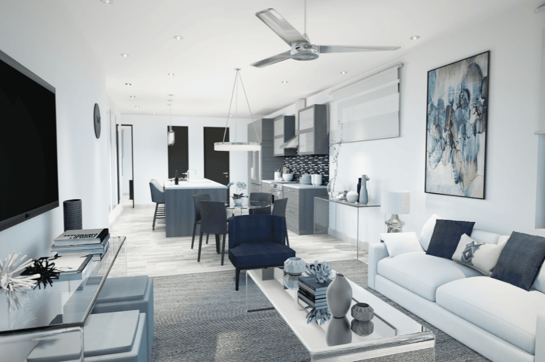 This exclusive community features 41 beautifully designed 1- and 2-bedroom condos ranging from 1,264 to 1,635 sq. ft., each blending sophisticated finishes with island-inspired charm. Open-concept living areas, sleek kitchens with quartz countertops and high-end appliances, and expansive balconies that invite the outdoors in define every residence.
